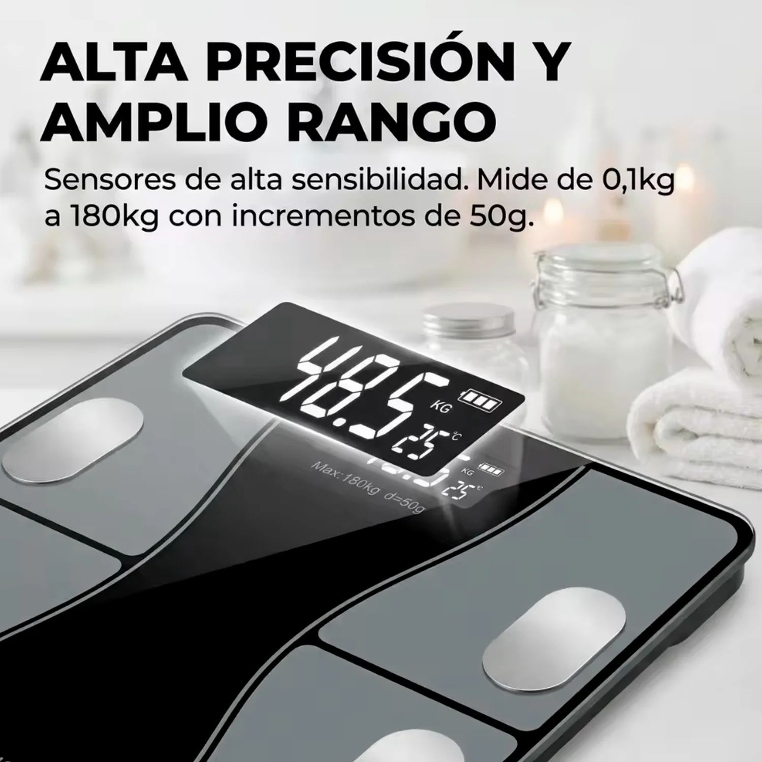 Lleva el control de tu bienestar al siguiente nivel con nuestra Balanza Digital Inteligente con conexión Bluetooth. No es solo una báscula; es una herramienta de precisión diseñada para quienes buscan un monitoreo detallado de su composición corporal desde la comodidad de su hogar.