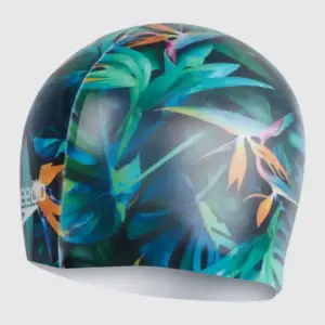 Aporta un toque exótico a tu entrenamiento con nuestra gorra con estampado digital, que presenta un atrevido estampado digital de la jungla. Hecho de silicona que no se engancha, el gorro de natación fácil de colocar no tirará de tu cabello y se mantiene cómodo durante tu entrenamiento, para que puedas concentrarte en nadar. El resistente diseño de silicona de larga duración lo hace ideal para sesiones regulares de natación y ayuda a proteger el cabello contra el cloro.