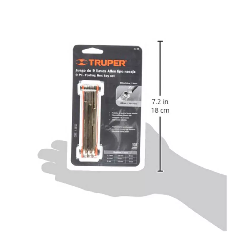 Juego de llaves Allen tipo navaja fabricadas en acero al cromo vanadio con recubrimiento satinado 3 veces más resistente a la corrosión.