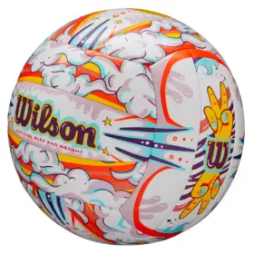 Con la pelota de voleibol Wilson, disfrutarás de partidos inolvidables llenos de emociones durante juegos en la playa. Su cubierta de piel sintética ofrece alta durabilidad. La construcción de 18 paneles unidos con costuras a máquina garantiza que mantenga sus características constantes por mucho tiempo. En su interior, tiene una vejiga de butilo que asegura forma aerodinámica y rebote, permitiendo un buen agarre en la mano. Recomendada para personas de 13 años en adelante, tiene el mismo tamaño y peso que las pelotas profesionales. La combinación de colores en un gráfico expresivo facilita seguir la pelota durante intercambios rápidos. Empaca esta pelota en tu bolso si planeas pasar tiempo activo con amigos o conocidos en la playa.