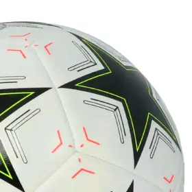 La pelota de futbol adidas UCL TRN Talla #5 es un balón de entrenamiento diseñado para el torneo de la UEFA Champions League, temporada 2024/2025. Este modelo presenta un diseño llamativo con los icónicos colores y gráficos inspirados en la competición, además de estar construido para ofrecer un rendimiento óptimo en entrenamientos regulares. Su estructura cosida a máquina asegura durabilidad, y la cámara de goma butílica proporciona una excelente retención de aire para mantener la forma del balón durante su uso.