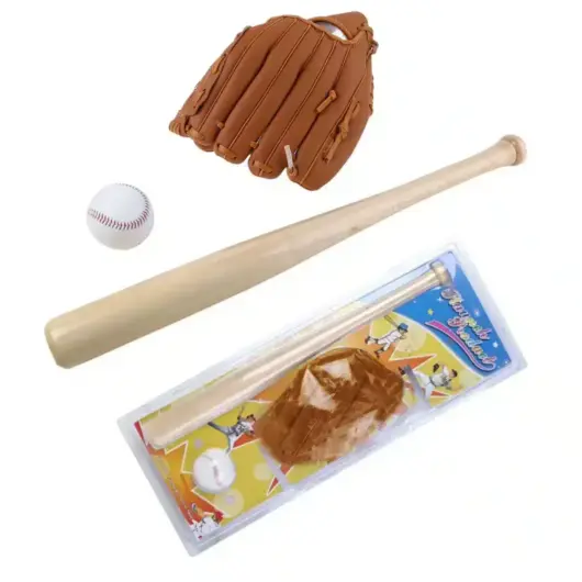 SET DE BÉISBOL PARA NIÑOS EN MADERA – BATE + GUANTE + PELOTA