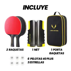 - Incluye: 2 raquetas, 6 pelotas 3 estrellas, 1 Net retráctil y 1 estuche.