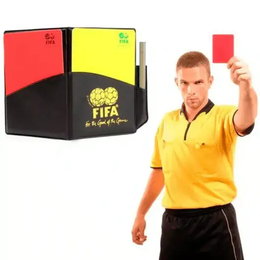 Tarjeta de árbitro billetera con tarjeta de color rojo y amarillo.